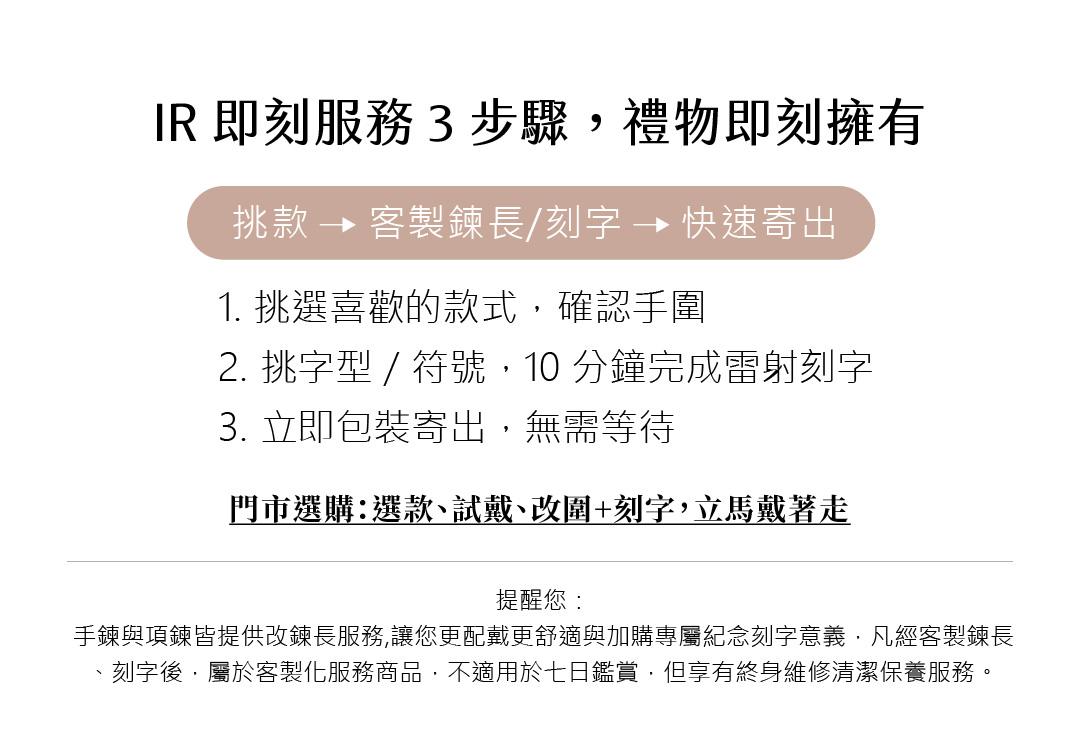 來門市挑對飾,選款►刻字10分鐘►立馬戴著走