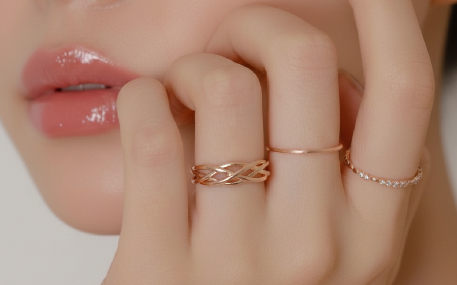 想提升財運時,常見的戒指戴法是將戒指配戴在右手食指或中指,這兩個戒指位置被認為有助於累積財富與守住成果。因為右手象徵行動與實踐,食指代表開拓機會,中指則與穩定與守成有關。材質上可選擇金色或玫瑰金色調,設計能以結構感明確、比例平衡的戒指為佳,呼應「守得住、留得下」的心理意象。